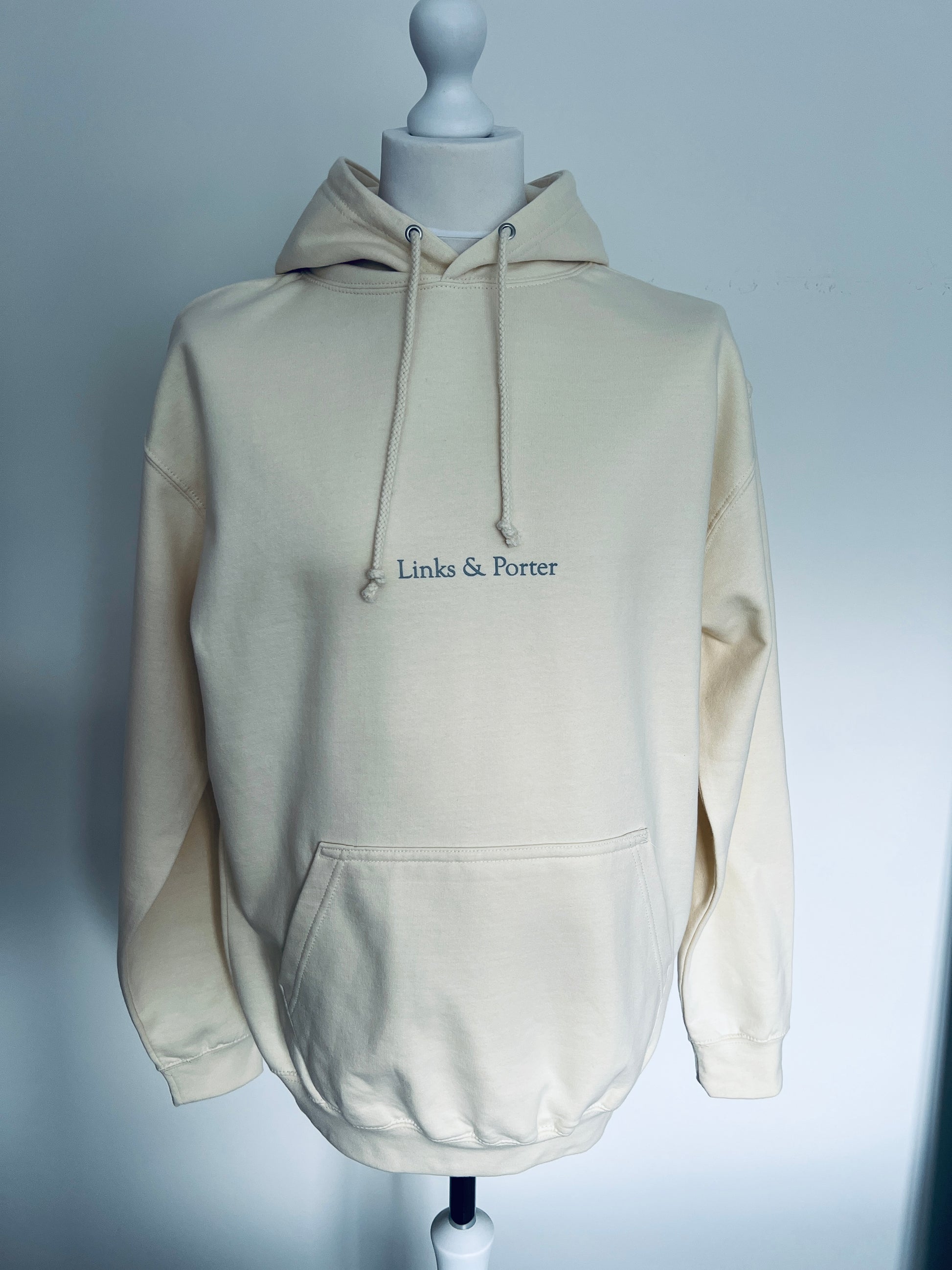 Porter Cream Hoodie with our signature Links & Porter Logo on the front. Perfect for evenings sharing a pint of plain with friends.